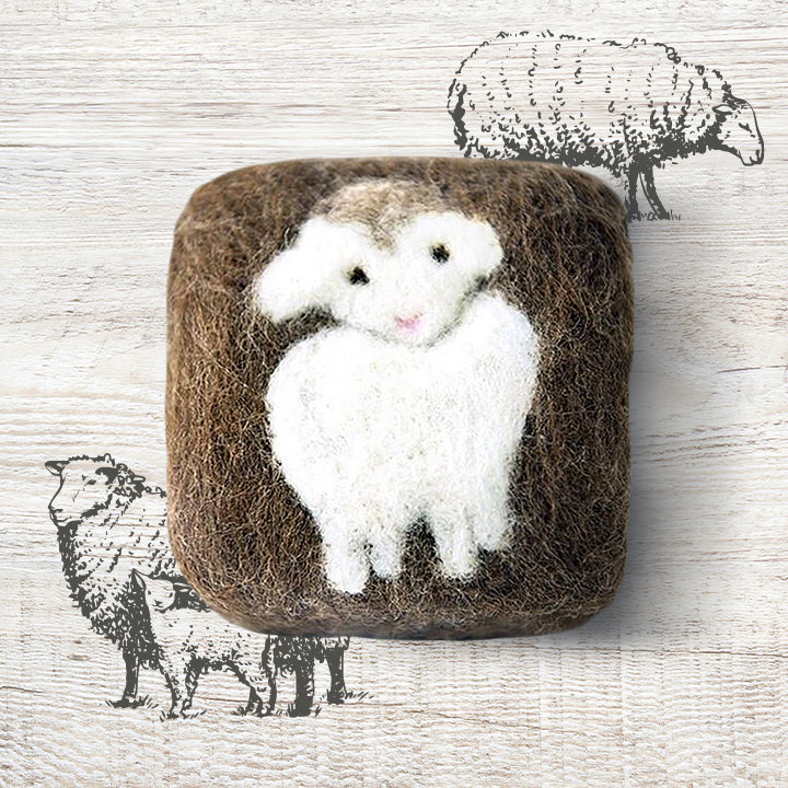 Our signature Sheep soap features our handmade, cold processed, almond scented soap felted with locally raised, un-dyed sheep’s wool. This wool comes from a Shepherdess in Sheridan, Indiana.